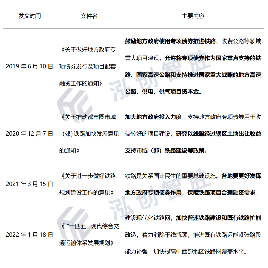 一、地方政府專項債券-鐵路領域相關文件梳理