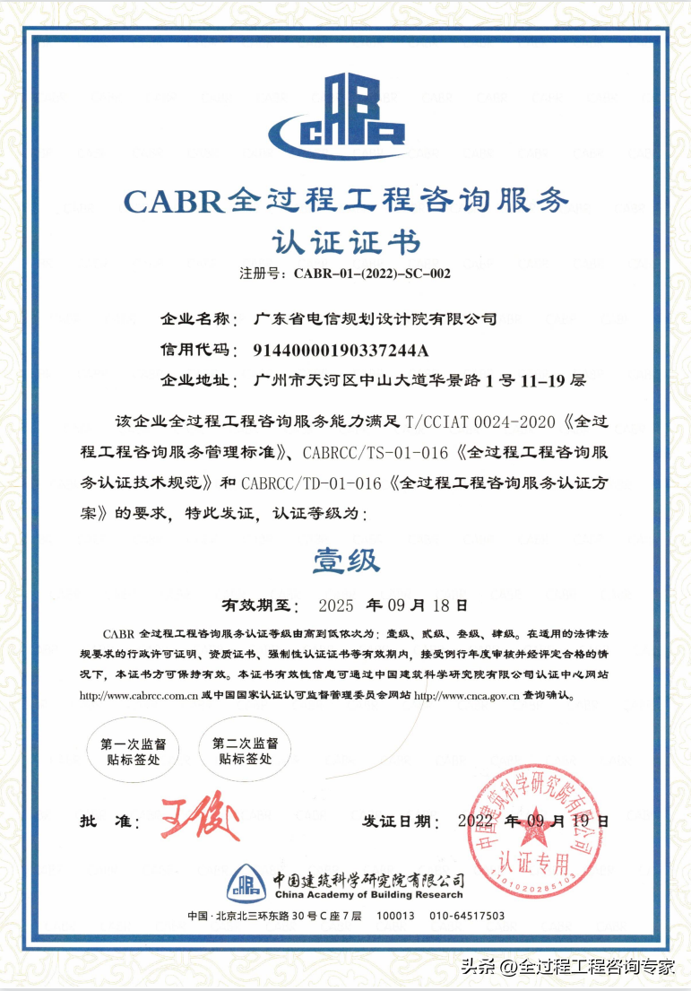 為了使全過程工程咨詢能夠為建筑企業提供完整的技術咨詢服務,有必要積極配合國家的“三放”(放活市場調節機制、放開技術創新活力、放寬資質資格限制)職能,加強管理業務發展,創建全過程工程咨詢服務的標準化系統,改善業務顧問的整體技術工作,由中國建筑科學研究院(以下簡稱“中國建研院”)認證中心開展新“出爐”的CABR全過程工程咨詢服務認證工作,為相關問題的解決提供了新方案、新路徑。