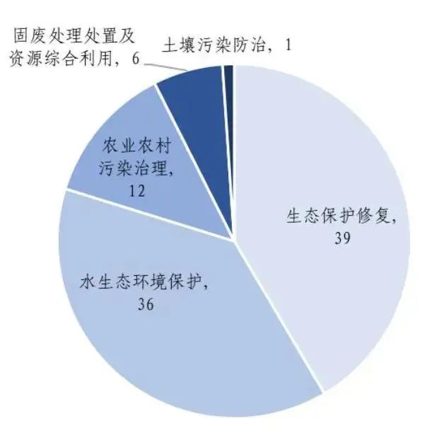大氣污染防治、水生態(tài)環(huán)境保護(hù)、重點(diǎn)海域綜合治理、土壤污染防治、農(nóng)業(yè)農(nóng)村污染治理、固廢處理處置及資源綜合利用、生態(tài)保護(hù)修復(fù),以及其他環(huán)境治理。