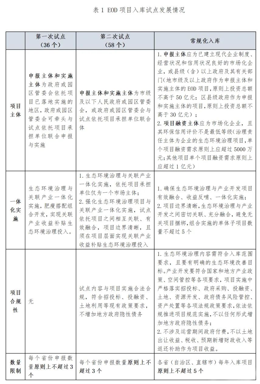 EOD模式由試點(diǎn)轉(zhuǎn)為常規(guī)的項(xiàng)目入庫(kù)制,主要有三大變化: