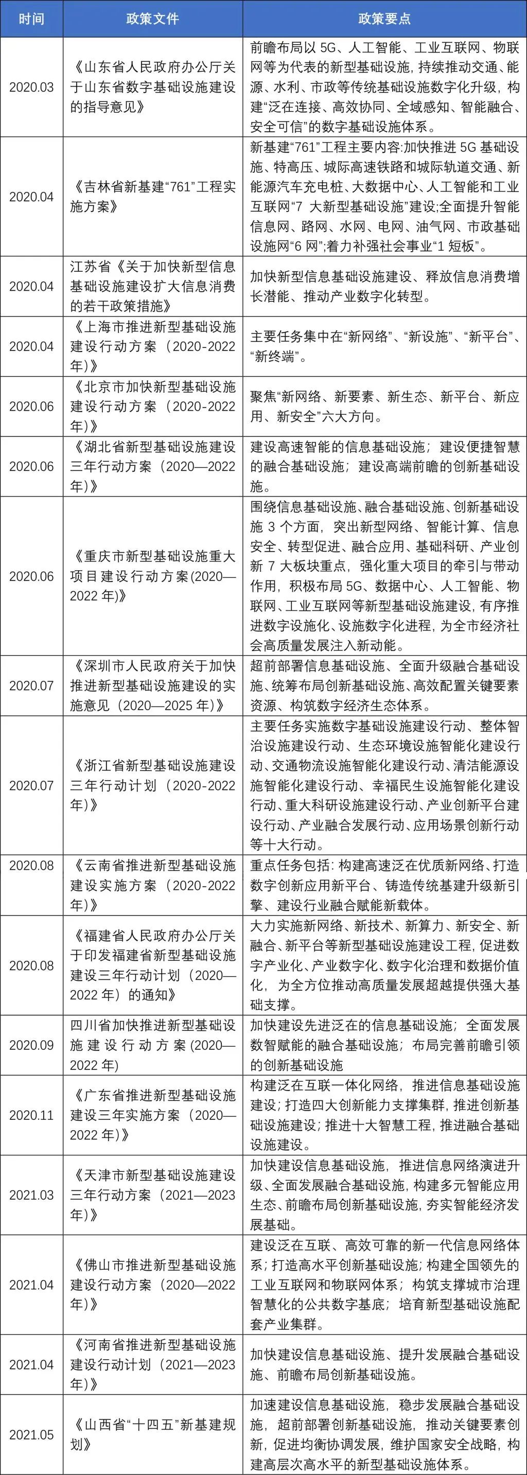 表2:新型基礎設施各領域涉及到的部分政策整理