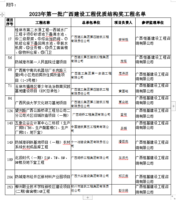 7月28日,廣西建筑業聯合會公布了2023年第一批榮獲廣西壯族自治區建設工程優質結構獎工程名單,對獲獎項目及單位予以全區通報表彰。廣西恒基建設工程咨詢有限公司監理的11個項目獲此殊榮。