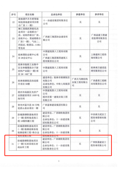 近日,廣西建筑業(yè)聯(lián)合會(huì)公布2023年度廣西鋼結(jié)構(gòu)金獎(jiǎng)工程名單,廣西恒基咨詢(xún)監(jiān)理的防城港鋼鐵基地項(xiàng)目(一期)長(zhǎng)材系統(tǒng)長(zhǎng)材成品庫(kù)工程位列其中。