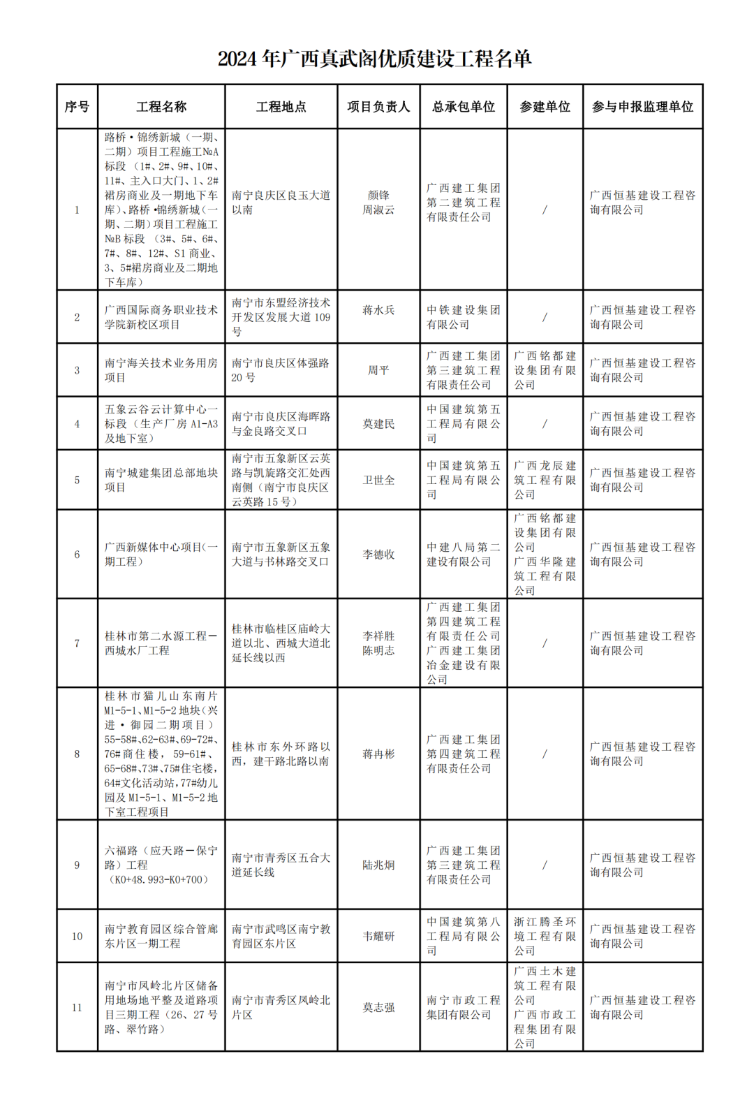 近日,廣西建筑業聯合會公布了2024年廣西真武閣優質建設工程名單,恒基咨詢11個項目榜上有名。