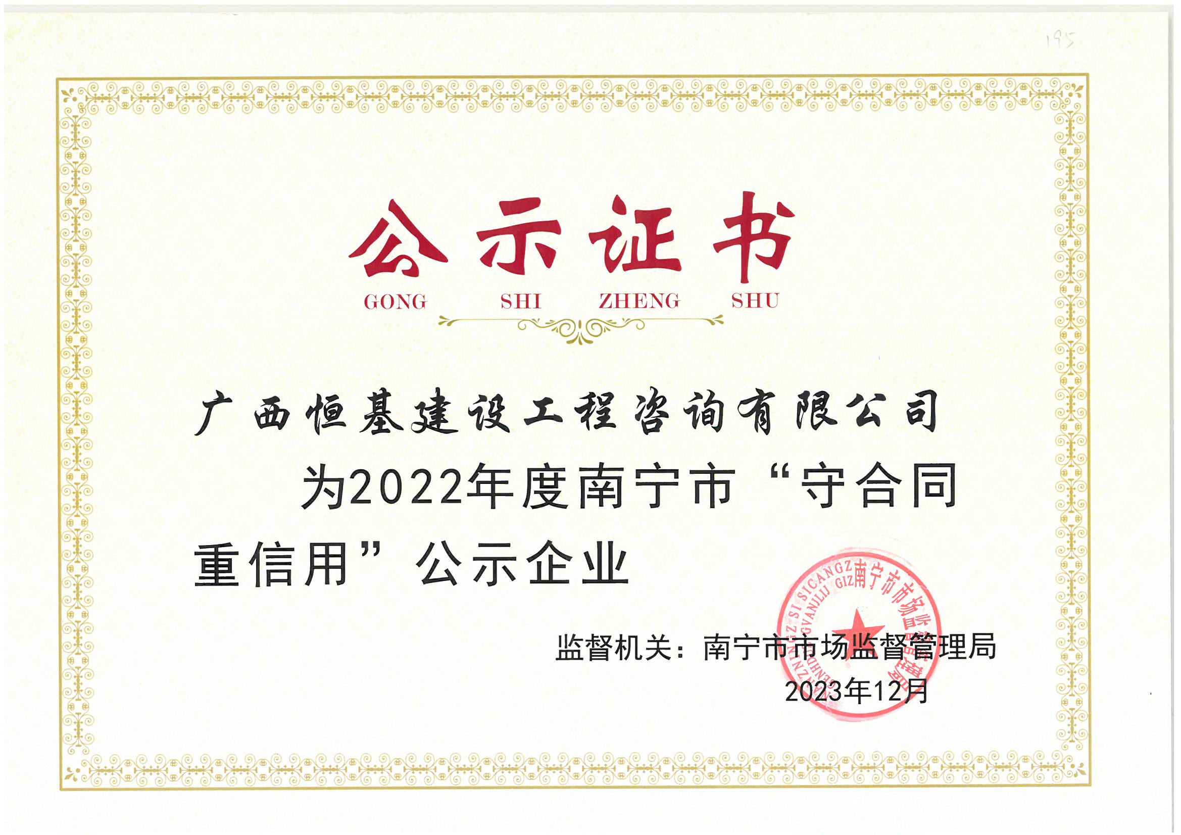 2022年度南寧守合同重信用企業