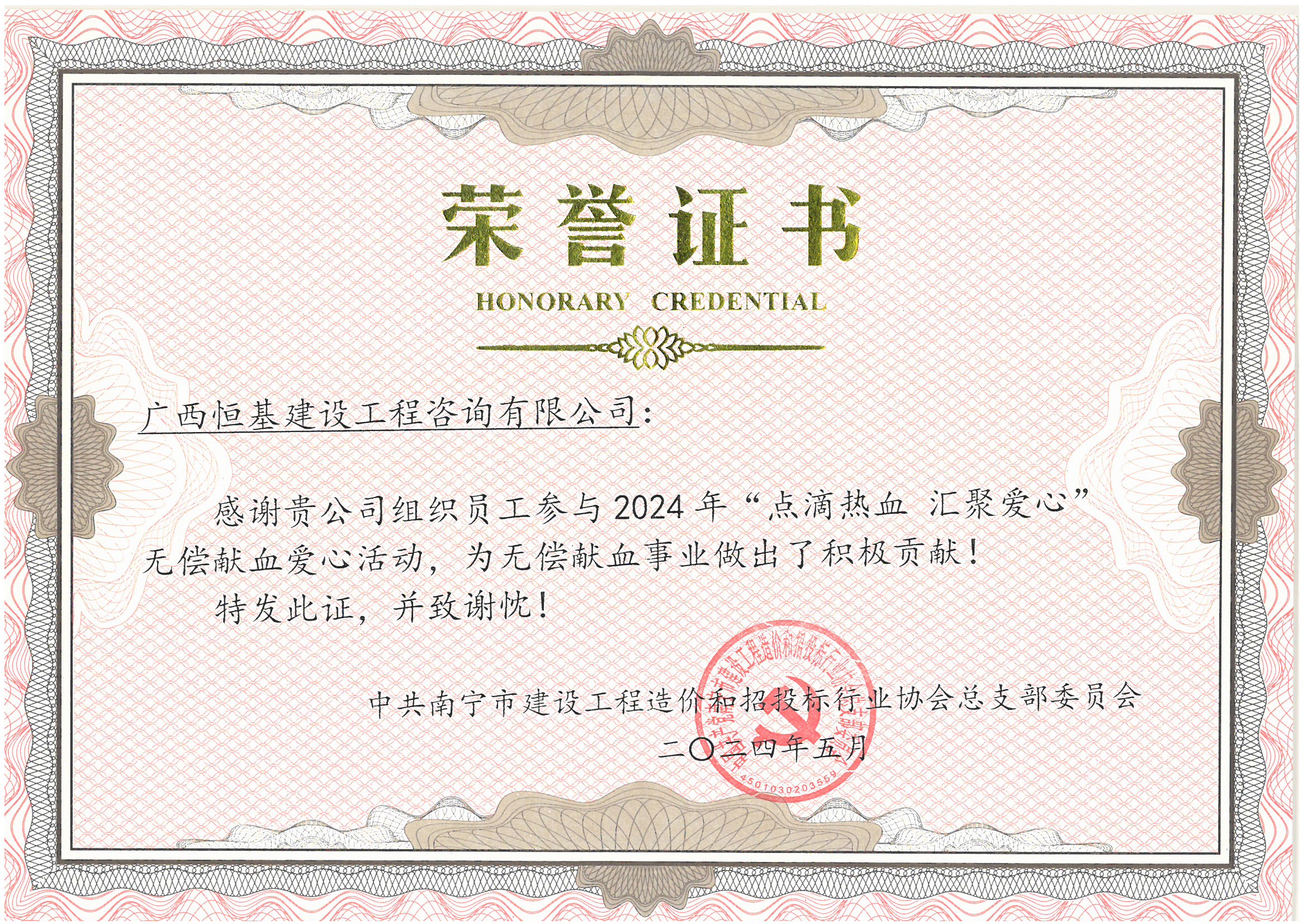 2024年無償獻血榮譽證書