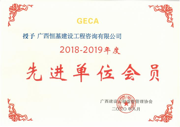 廣西建設工程造價管理協會2018-2019年度先進單位會員